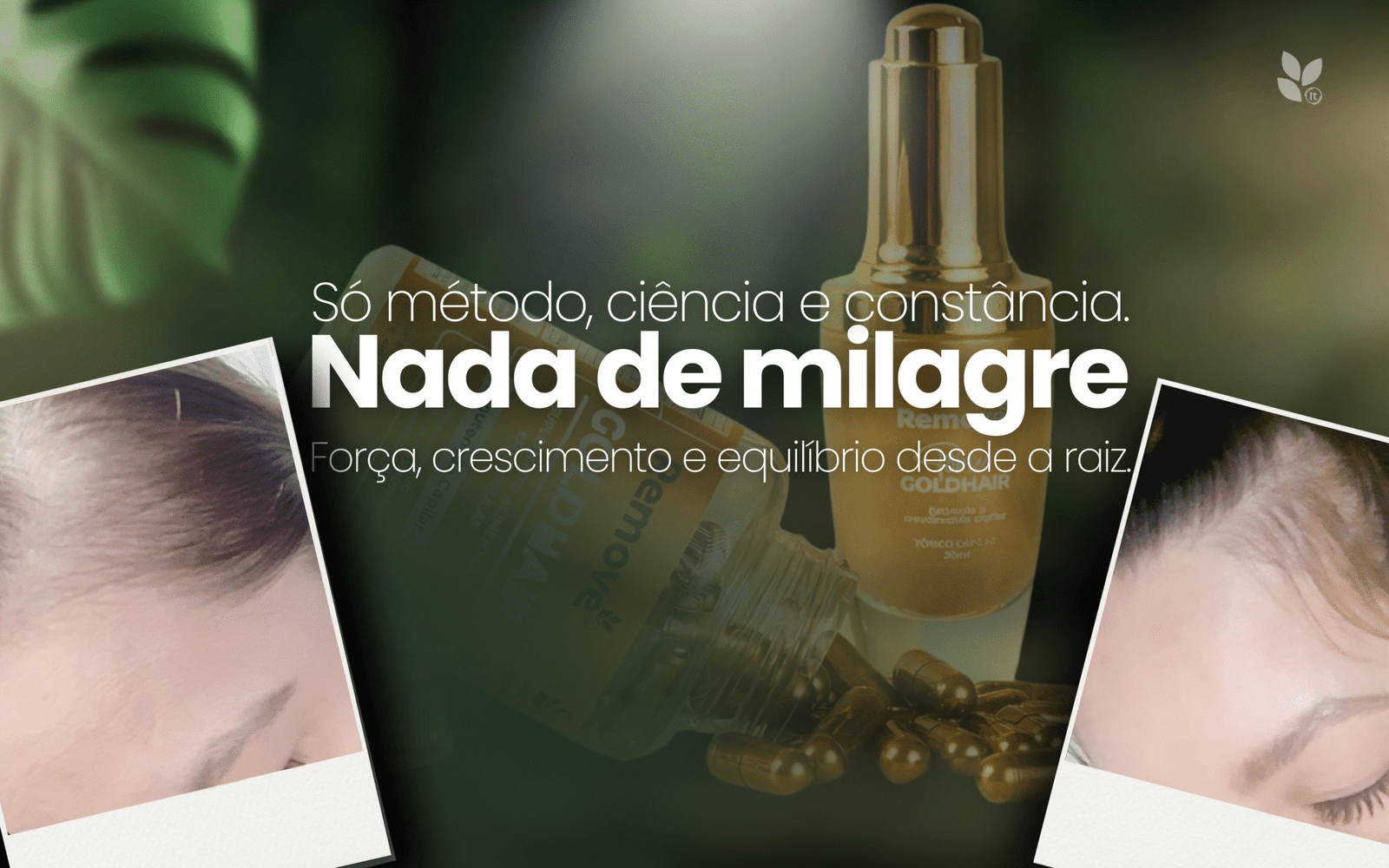 Gold Hair Tônico Contém : D-Pantenol , Trichogen VEG , Ginkgo Biloba, Vitamina E, Alecrim , Mentol.